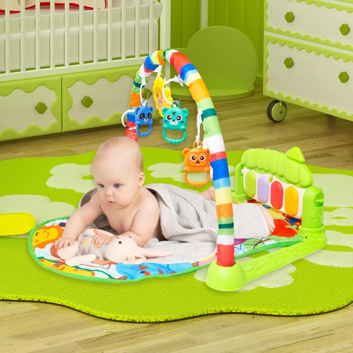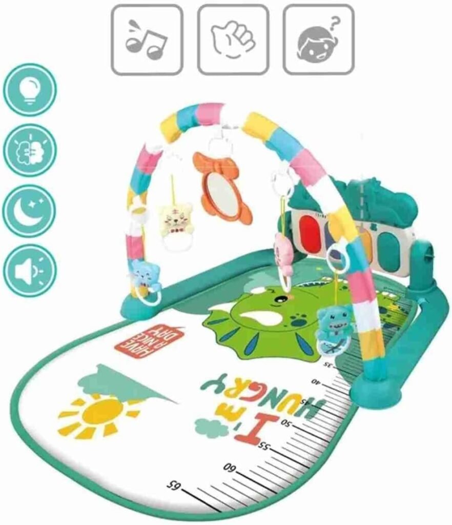 - Arco de brinquedos interativos, estampado e cores vibrantes